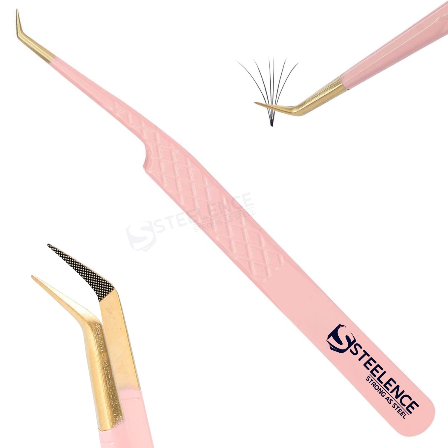 This model features a baby pink coated handle, gold point tip and a diamond grip design that provides strong control, balance and precision during professional lash work. Each piece is carefully aligned and finished to ensure durability and consistent performance in bulk production.