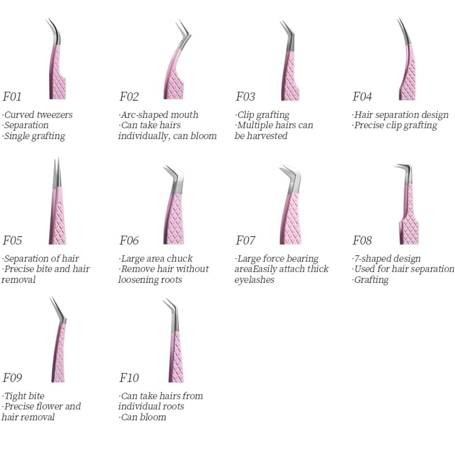 Each tweezer features a diamond grip handle that provides excellent control and reduces hand fatigue during long lash sessions. The pink coated finish adds a stylish and modern look, while the fiber tip technology ensures a strong, non-slip grip on even the finest lashes.