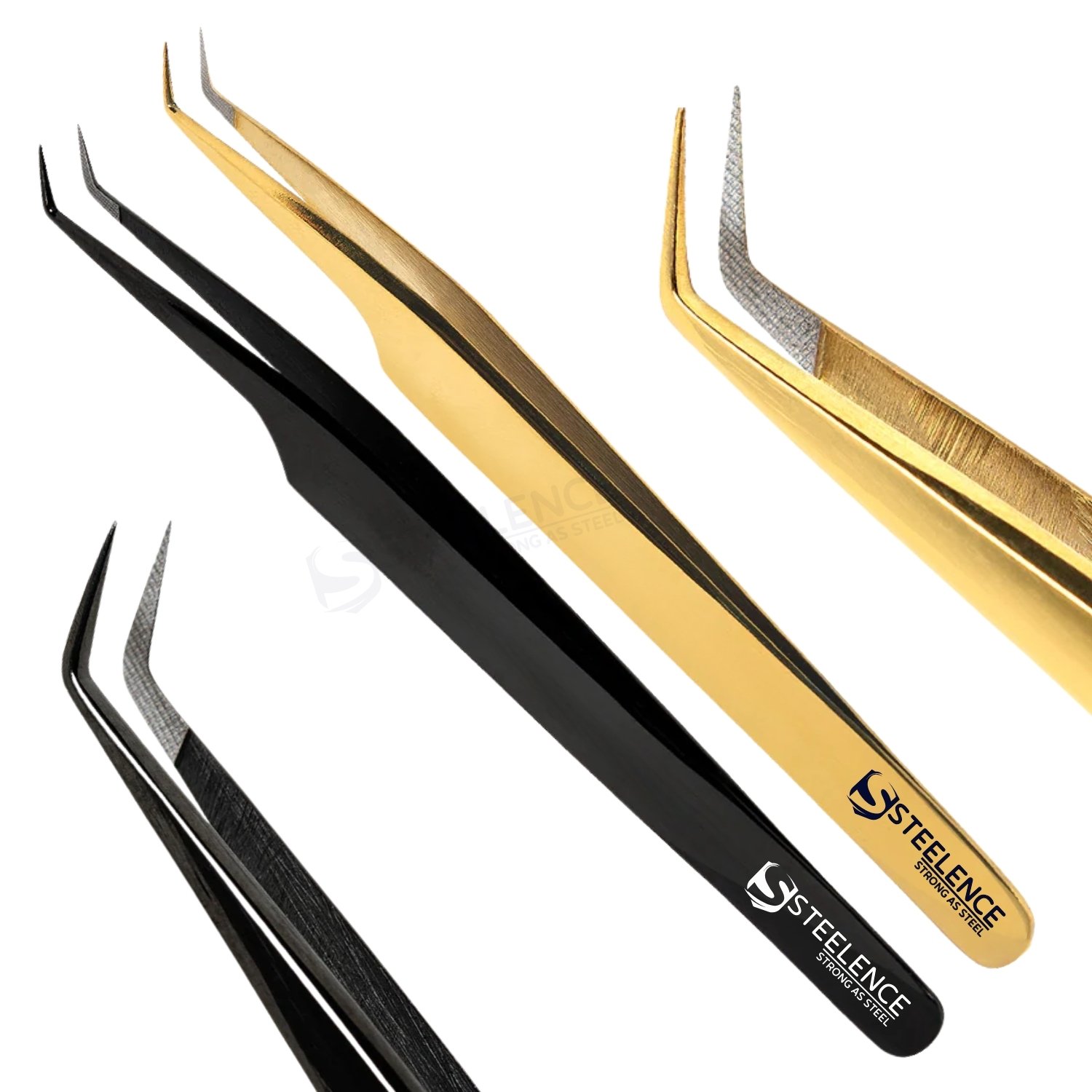 • Steelence premium eyelash tweezers packaging with magnetic boxes and custom logo options for wholesale lash tool brands.