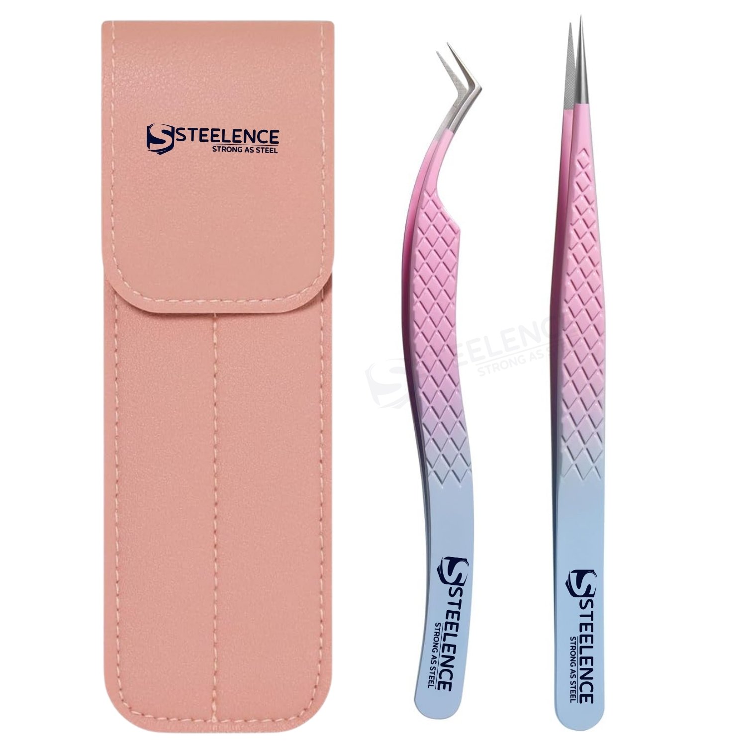 • Steelence premium eyelash tweezers packaging with magnetic boxes and custom logo options for wholesale lash tool brands.