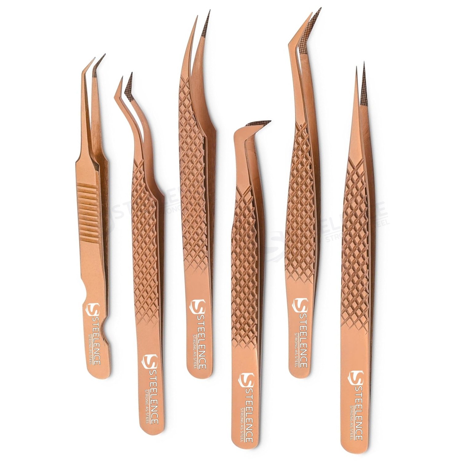 • Steelence premium eyelash tweezers packaging with magnetic boxes and custom logo options for wholesale lash tool brands.