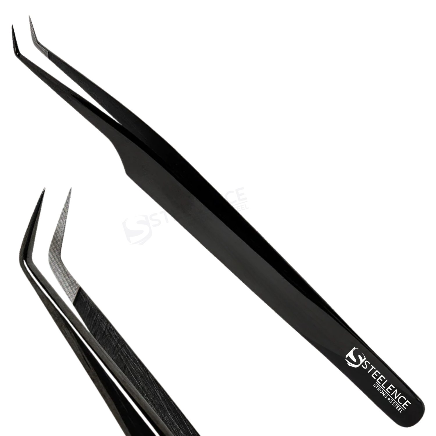 • Steelence premium eyelash tweezers packaging with magnetic boxes and custom logo options for wholesale lash tool brands.